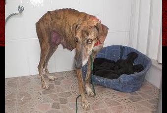 http://perrosdecasa.blogspot.com/2011/04/lena-mama-galga-famelica-y-sus-8-bebes.htmlCopio de galgos 112 La mamá con los bebés son 7 machos y 1 hembra, ella tiene una mastitis muy grande por lo que los bebés no podrán mamar.