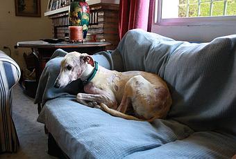 Luz por fin ha salido de la clínica y aunque todavía le quedan meses de recuperación, curas y medicación, ¡es una galga feliz! ¡Luz vuela libre, corre, salta y juega! (y roba toda la ropa interior y las zapatillas que encuentra en sus carreras… ejem…)