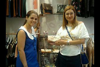 Con Mery, de Mon Amour León, y la cartera preciosísima que me tocó en el sorteo. Por cierto, la imagen es en la tienda, que está en la calle Burgo Nuevo, y os recomiendo que os paséis a echar un vistazo porque tiene cosas monísimas.