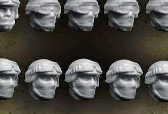 La marca de piezas alternativas y figuras Puppets War,nos ofrece desde Polonia dos nuevos sets de piezas en resina y escala 28 mm,que están relacionados entre si.Por un lado tenemos los Tactical Troopers Heads,esculpidos por Maciej Powarunas.Son 10 cabezas,con un estilo muy parecido al de los actuales marines y soldados de los ejércitos actuales.Hay tres modelos y una es para usarla como cabeza distintiva de un sargento.El pack de 10 sale a 7 euros,sin gastos de envío.Y junto con el,se ha puesto a la venta el ya clásico pack de cuerpos con estas nuevas cabezas,formado una escuadra completa de 10 figuras(9 soldados y un sargento) por 29 euros.Creo que de todas las cabezas que ha sacado Puppets War,estas son las que mejor pegan con esos cuerpos.