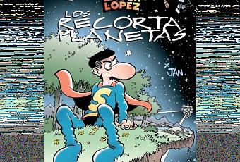 -Superlópez. Los Recortaplanetas JanMagos del Humor n° 154Cartoné, 48 páginas, 21,5 x 29,7 cm, colorPVP: 12 €. A la venta el 7 de eneroSeres de otro planeta invaden la Tierra para aprovechar los recursos que en ella encuentren. Comparados con nosotros son gigantes, por lo que toman a los terráqueos por meros animales de compañía. La cosa se pone bastante negra, pero Superlópez tomará la iniciativa y expulsará a estos seres de la Tierra.