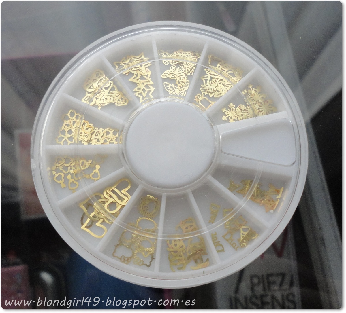 Diseños para las uñas, yo me cogí este que lleva 12 diseños diferentes y de cada uno hay 10. Algunas figuritas me encantaron sobre todo para usar en navidad. Este que tengo lo podéis encontrar aquí por 2,99$, pero si os gusta algún diseño en concreto también los venden sueltos en paquetes de 1000 unidades y tienen otros diseños muy cucos como el de ositos pero el precio ya asciente a 8,80$ (podéis verlos aquí)