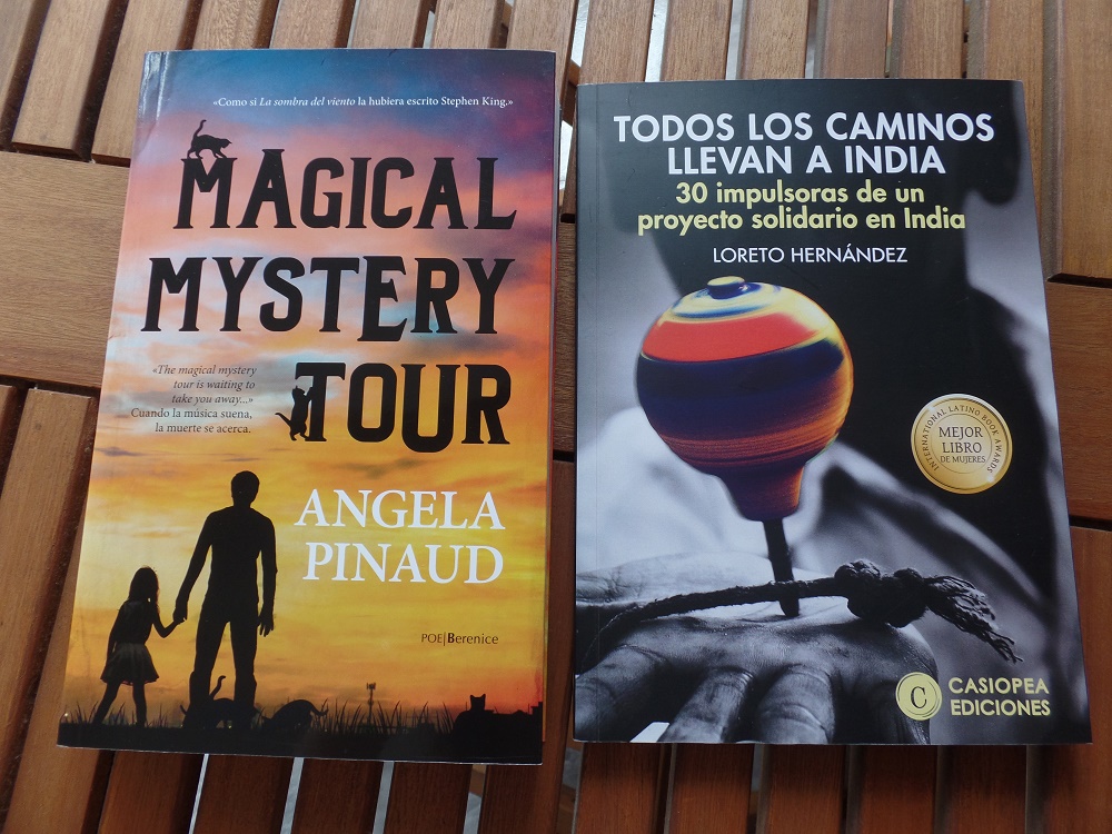 Magical Mistery Tour de Ángela Pinaud (Berenice). Su autora contactó conmigo y me ofreció la posibilidad de leerlo. No es un género que suela leer demasiado pero la sinopsis me llamó la atención y acepté. Lo he terminado hace unos días así que pronto os contaré mis impresiones.Todos los caminos lleva a India de Loreto Hernández (Casiopea Ediciones). Ya sabéis que todo lo que tiene que ver con La India me atrae poderosamente así que cuando vi este libro en el catálogo de la editorial me quedé con ganas de leerlo y gracias al ejemplar que me han remitido ya he podido disfrutar de las historias que recoge en su interior.