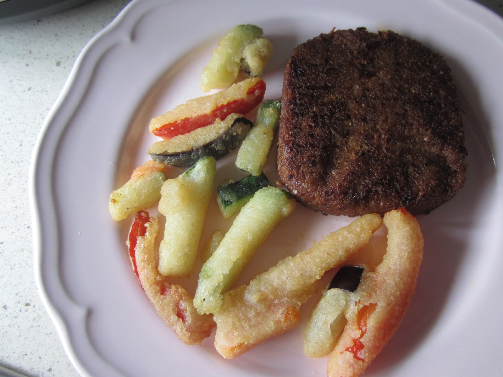 Fue nuestra comida ayer, unas burguer de lentejas y avena y de guarnición la tempura de verduras. ¡De 10!