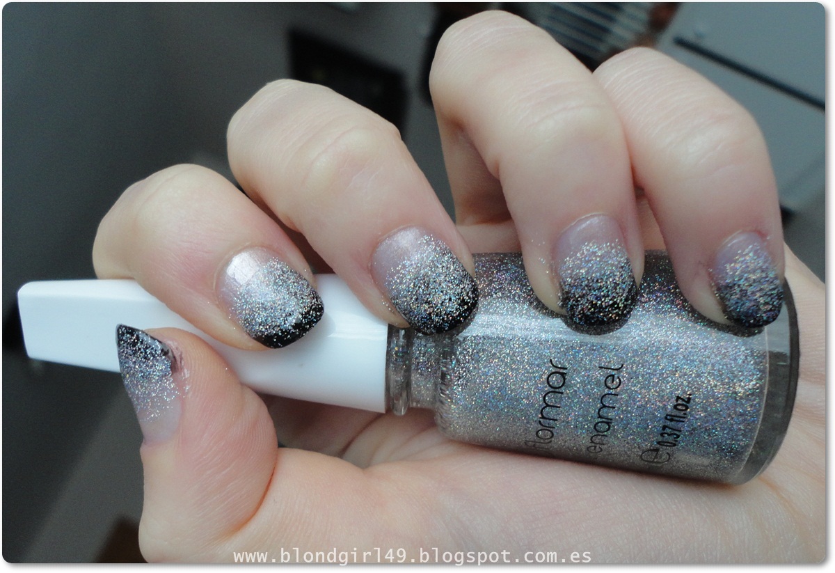 Como veis el negro es bastante cubriente, cuanto menos lo sea os irá mejor para cubrirlo con el esmalte purpurinoso, sin duda mi Geme acertó de lleno en regalármelo porque es una maravilla no paro de usarlo en mis looks uñiles jajajaRESULTADO: