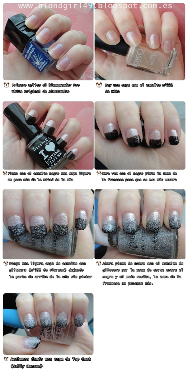 Hola corazoncetes ¿qué tal el comienzo de semana? espero que muy bien!! Yo la he empezado bastante bien, entre otras cosas ayer tuve que hacer varios encargos y aprovechando que tenía que ir por Palma centro me acerqué a Rituals a buscar mi regalo :D una tarjeta de 50€ para mi!!! me volví loquita jijiji encima la chica super simpática, ya el día de la Shopping hablamos un poco con ella y se veía que era encantadora, no recuerdo su nombre pero sí puedo decir que es eslovaca y habla a la perfección el español (tiene mucho mérito^^). Ya el día de la fiesta toqueteé casi todo así que ya más o menos sabía las cositas que me gustaría probar, aún así me tiré la vida mirando y oliendo xD la chica me invitó a tomar un té delicioso (que es uno de los regalos que el nene me compró para navidad) y me cogí algunas cositas que ya os enseñaré y también un regalo para el nene que también le guardaré para navidad junto con los otros que tengo :D. Me pasé de los 50€ pero tampoco demasiado y seguro que lo que he cogido me encantará! Ya os mostraré las compris :) y más adelante reviewsAntes de empezar con la entradita de hoy me gustaría enseñaros un poquito por encima alguna novedades de navidad de Mercadona, sin duda hay algunas cosas muy cucas :D y como fui a comprar fruta intenté sacar algunas fotos aunque no pude sacar a todo.. igualmente lo comentaré aunque no tenga fotis :), primero vamos a las fotos: 1. Todavía sigue la oferta de los labiales y sombras individuales a 2,50€ según he leído por ahí no son gran cosa las sombritas, se ve que no pigmentan demasiado bien...2. Paleta pequeña de maquillaje que viene con 9 sombritas con brillitos, cuesta 2,99€3. Paleta mediana de maquillaje que lleva sombritas con brillitos, coloretes y labiales tipo gloss, precio 7.95€4. Paleta grande de maquillaje, como veis lleva más variedad que la mediana y se abre mucho más, su precio 9,99€5. Pegatinas para las puntas de las uñas, son de purpurina y hay en diferentes colores, yo he visto moraditas, rojas, doradas y plateadas. Precio 2,25€Todo lo anterior lo había visto ya el viernes pero el Lunes día 19 me he encontrado con esto: 6. Arriba a la izquierda: labial rojo pasión a 4,50€Arriba-derecha: esmalte rojo pasión a 3,50€Abajo-izquierda: sombra individual negra con brillitos, es preciosa pero para que pigmente bien negro hay que usar una buena prebase o un mixing, sino queda como grisáceo oscuro. Su precio es de 4€Abajo-derecha: kit de maquillaje que está compuesto por unos polvos compactos que para mi son muy oscuros, no sé si es formato crema o polvo compacto porque lo vi tan oscuro que ya ni lo toqué, pero viene con una mini-kabuki muy cuca y el neceser es una preciosidad^^. Su precio es de 7€7. Arriba-izquierda: pulverizador de brillitos, ya por el envase hace mucha comprera (que se note que soy mallorquina xDD, es como las antiguos perfumes que el pulverizador era como un pompón de aire^^ y este tira bastante purpurina para iluminar el cuerpo o el cabello, tira bastante brillo y son como tonos plateados :), su precio es de 7€Arriba-derecha: 2 labiales pero no son pigmentados sino tipo gloss, uno parece muy oscuro pero al aplicarlo queda un tono frambuesa-glossy muy cuco y el otro es rosita bebé pero también efecto gloss. Cada uno cuestan 4,50€Abajo-izquierda: un trío de sombras que vienen en formato perla (como los de Bourjois que son con relieve redondeado), sin duda la sombra que está en el pico superior me ha enamorado, es difícil de describirlo porque es como un morado oscuro con negro pero también brillitos preciosos de diferentes tonalidades como rojizas, moraditas y había más tonalidades. Su precio es de 6€Abajo-derecha: lápices de ojos preciosos, uno es plateado efecto metálico (estoy por comprarlo porque el que yo tengo de YR se me está acabando y no es fácil encontrar este tono, normalmente son grises...) y el otro es negro creo que también se veía algo metalizado. Son retráctiles. Cada uno cuesta 3€Y además había cosas a las que no me fue bien sacar fotitos:- 4 esmaltes nuevos con purpurinitas que creo que costaban 2,50€ y uno de ellos se parece bastante al que os enseño hoy de flormar (pero no sé si se puede conseguir el mismo efecto con este de Deliplus -aviso para que no haya confusiones-)- 2 kits con 2 esmaltes y una lima pequeña (son una preciosidad) y vienen dentro de un minineceser. Los kits están compuestos por los esmaltes antes mencionados. No recuerdo el precio pero creo que no superaban los 5€.- Diademas y horquillas preciosas para el cabello, sin duda todo es precioso! las diademas algunas eran con la típica pluma grandecita, también creo que había unas más gruesas con perlitas y las horquillas llevaban pedrería muy brillante^^. Creo que el precio de cada cosa rondaba los 3,50€Para hoy traigo el look de uñas que os enseñaba en el maquillaje que presentaba al concurso de Gadi^^ (os dejo aquí el enlace por si queréis ver las fotis) a algunas os gustó bastante y como había sacado las fotos del proceso os lo enseñaré junto con los productos que he ido usando. Espero que os guste^^ ESMALTES EMPLEADOS: De izquierda a derecha:- Pro white original de Alessandro- Esmalte nº221 de Kiko- Esmalte nº080 Black Cab de Rimmel London- Esmalte nº392 de Flormar- Double duty de Sally Hansen (base & top coat)PROCEDIMIENTO: Como veis el negro es bastante cubriente, cuanto menos lo sea os irá mejor para cubrirlo con el esmalte purpurinoso, sin duda mi Geme acertó de lleno en regalármelo porque es una maravilla no paro de usarlo en mis looks uñiles jajajaRESULTADO: Las fotos no le hacen demasiada justicia a la manicura porque en persona brilla un montón! pero en las fotos no :( pero hay días que el cielo está bastante oscuro así que por mucho que saliera fuera no se vería mejor.. ¿Qué os parece el look? ¿os gustan las manicuras con purpurinas? Yo ya me he hecho esta manicura c