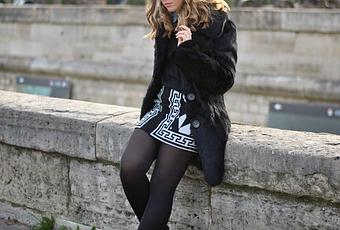 Para el primer día estrené mi nueva falda estampada en black and white, y la combiné con mis botines favoritos, un jersey negro y camisa vaquera. En una de las tiendas parisinas me compré mi gorrito con pompon de pelo, para evitar el frio en las orejitas y completar del todo mi look.