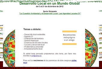 El Grupo de Investigación eumed●net de la Universidad de Málaga y la Red Académica Iberoamericana de Desarrollo Local-Global, invitan a especialistas de departamentos universitarios, Asociaciones profesionales, ONGs, Entidades del Estado, Organismos Internacionales, otras organizaciones sociales, y especialistas individuales que puedan estar interesados en participar del Cuarto Simposio sobre "La Cuestión Ambiental y el Desarrollo Local: Las Agendas Locales 21” . Este evento se realizará del 3 al 21 de Diciembre de 2012 íntegramente por Internet a través del sitio web www.eumed.net/eve/.