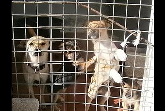 NUBE ES UNA PERRITA QUE HA LLEGADO A LA PROTECTORA CON SUS 3 CACHORRITOS.