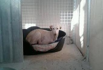 Abandonada en medio del campo y recogida por la perrera. .Ahora mismo esta en una jaula y ya sabemos lo que pasara alli,, empezaran a salirle llagas y ulceras del frio..