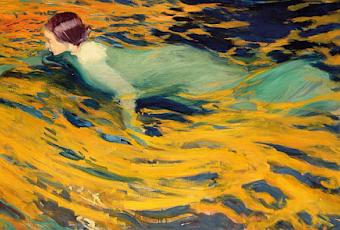 Ilustración Joaquín Sorolla.-Gerardo Diego-Yopastor de bulevaresdesataba los bancosy sentado en la orilla corriente del paseodejaba divagar mis corderos escolaresTodo había cesadoMi cuademoúnica fronda del inviernoy el quiosco bien anclado entre la espumaYo pensaba en los lechos sin rumbo siempre frescospara fumar mis versos y contar las estrellasYo pensaba en mis nubesolas tibias del cieloque buscan domicilio sin abatir el vueloYo pensaba en los pliegues de las mañanas bellasplanchadas al revés que mi pañueloPero para volares menester que el sol penduley que gire en la mano nuestra esfera armilarTodo es distinto yaMi corazón bailando equivoca a la estrellay es tal la fiebre y la electricidadque alumbra incandescente la botellaNi la torre silvestredistribuye los vientos girando lentamenteni mis manos ordeñan las horas recipientesHay que esperar el desfilede las borrascas y las profecíasHay que esperar que nazca de la lunael pájaro mesíasTodo tiene que llegarEl oleaje del cine es igual que el del marLos días lejanos cruzan por la pantallaBanderas nunca vistas perfuman el espacioy el teléfono trae ecos de batallaLas olas dan la vuelta al mundoYa no hay exploradores del polo y del estrechoy de una enfermedad desconocidase mueren los turistasla guía sobre el pechoLas olas dan la vuelta al mundoYo me iría con ellasEllas todo lo han vistoNo retornan jamás ni vuelven la cabezaalmohadas desahuciadas y sandalias de CristoDejadme recostado eternamenteYo fumaré mis versos y llevaré mis nubespor todos los caminos de la tierra y del cieloY cuando vuelva el sol en su caballo blancomi lecho equilibrado alzaré al cielo.