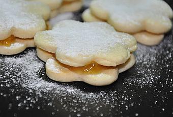 Dejar enfríar y rellenar, espolvorear con azúcar glas.