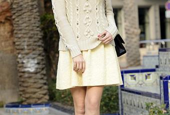 Buenosdías! Que tal los reyes magos?Hoy 7 de Enero empiezan las rebajas, yo iré a comprar cositas para mi y también buscaré para mis clientas, será un día de no parar!El look de hoy es muy cómodo con el vestido estampado tweed en tonos amarillo pastel y blanco roto, con el creamos una mezcla de chica lady pero con el tricot también un toque casual. Y de complementos mis dos joyas el bolso 2.55 de Chanel y las gafas de Miu Miu con forma pentagonal.
