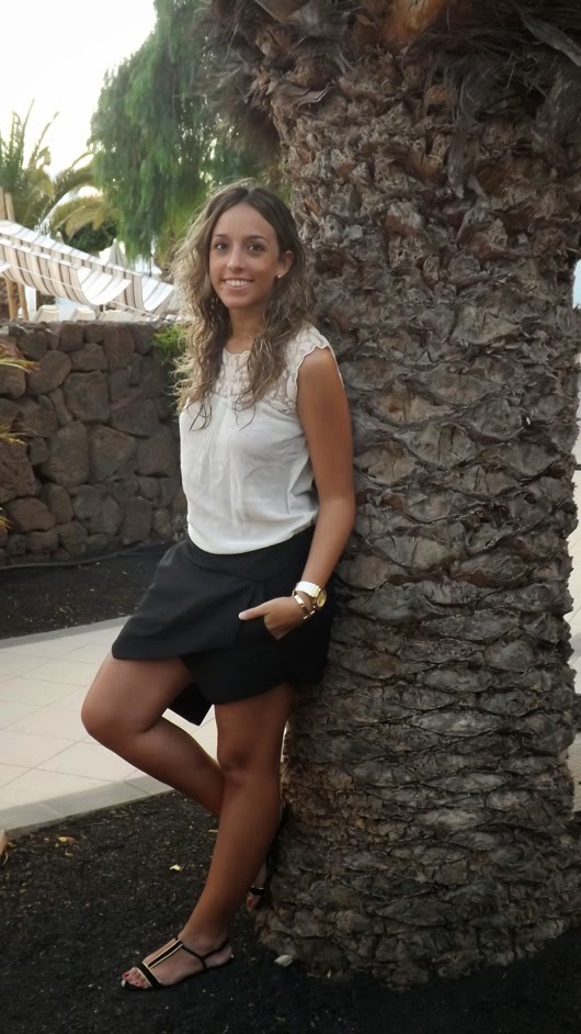 La skort de Zara se ha convertido en un básico de verano: combinable gracias a su color neutro y cómodo precisamente por ese pantalón escondido tras la falda, así que la rescaté del armario y la utilicé con más básicos de esta temporada. El resultado lo veis en un momento; sencillo pero con un toque especial para un día especial.