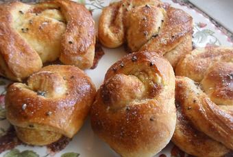 Hoy unos nudos un poco diferentes, son suaves y esponjosos, con un rico aroma y sabor a cardamomo.La receta la encontra hace poco buscando por internet, de momento me dieron ganas de hacerla, aunque fuera una versino reducida siguen estando riquisimos.