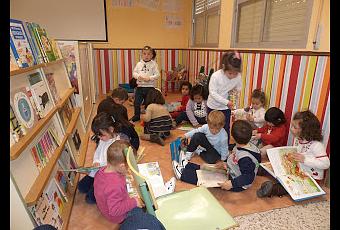 Este viernes hemos ido a visitar la biblioteca del colegio. Todos sabíamos que teníamos que portarnos muy "requetebién", sin hablar o coger nada sin permiso y por supuesto, colocar los libros en su lugar cuando termináramos de "leerlos". Y la verdad es que se han portado ¡ estupendamente !. Primero entramos y observamos cómo es la biblioteca y nos situamos en la zona infantil, ¡ cuántos cuentos !, la seño cuenta uno, todos escuchan con atención pero también están deseando que termine para poder coger alguno de los cuentos de las estanterías. ¡Por fin! ¡Ya podemos coger el cuento que queramos!.... Seguro que muy pronto volveremos de nuevo a la biblioteca, ¡ ha sido muy divertido !.