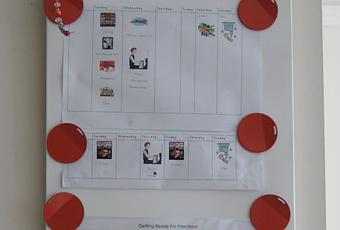 Mi estilo de crianza se refleja en toda la casa de muchas maneras: muchas ayudas visuales para que los niños se organicen y les recuerden las tareas domésticas de las que son responsables. Nuestra casa es completamente apta para niños y hay estantes dedicados en los armarios de la despensa para que los niños accedan a lo que necesitan para poder tomar una bebida o algo para comer, ordenar después de derrames, etc. También tenemos una pequeña nevera que puede acceder en cualquier momento para un refrigerio saludable.