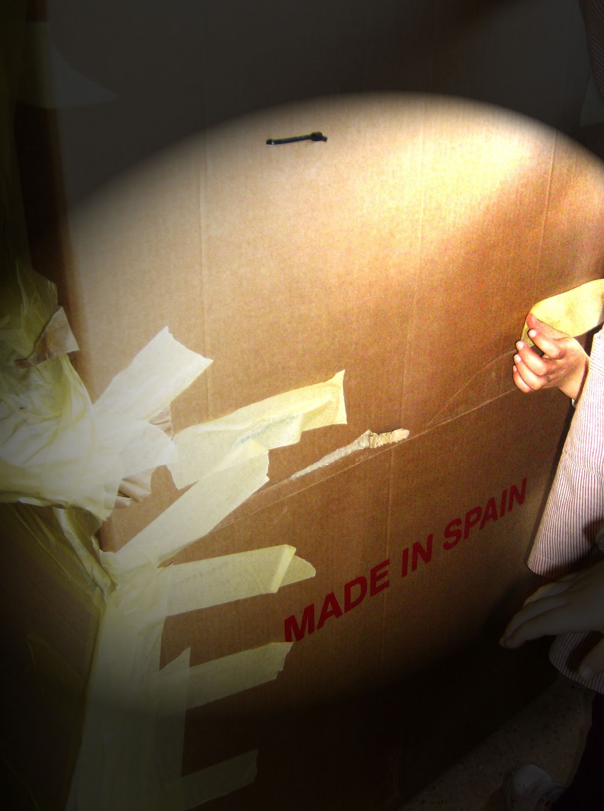 Y por último los peques se han puesto a forrarla con papel de periódico y cola de empapelar ,para darle mayor homogeneidad.