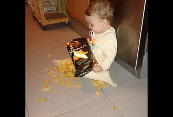 Y esto....a ver, que algún experto me confirme si comer snacks del suelo...es BLW, porque lo que soy yo no acabo de tenerlo muy claro...😅