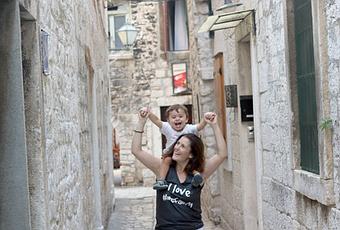 Como los niños se nos durmieron en la silla, (ya sabéis que llevamos la sillita doble Phil&Teds cuando viajamos), fue una visita bastante fugaz y volvimos a coger el coche para regresar a nuestro apartamento, pero no sin antes dar un paseo por las preciosas y angostas calles de Trogir.