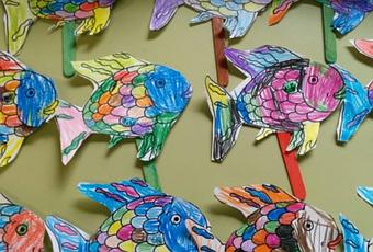 Nos ha gustado tanto este cuento que hemos hecho unos peces Arcoiris para llevárnoslos a casa.