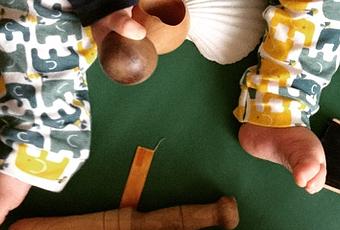 Acabamos de incorporar un nuevo elemento a la panera de los tesoros, un rompenueces de madera que compré en una tienda de artesanía este fin de semana. En principio lo he comprado para que practique el giro de muñeca, pero creo que por el momento su función será la de ser mordisqueado a la par que sirve de martillo para dar golpes a lo que encuentre a su paso. ¡Qué miedito me da este niño!