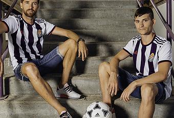 El Real Valladolid se estrena con adidas para las nuevas equipaciones. La primera camiseta para la temporada muestra un diseño que enlaza con la línea clásica de adidas, con cinco rayas moradas gruesas verticales y tres finas horizontales que van desde el cuello hasta cada una de las mangas como los detalles rojos del cuello y las mangas. Color, el rojo, que guarda un estrecho e histórico vínculo con el escudo de la ciudad de Valladolid. De ahí que el Club que la representa haya contado frecuentemente con él para su segunda indumentaria.