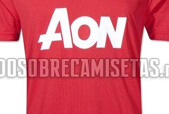 AON vuelve a aparecer en el centro, con el logo de Nike a la derecha y el escudo de los Red Devils a la izquierda.