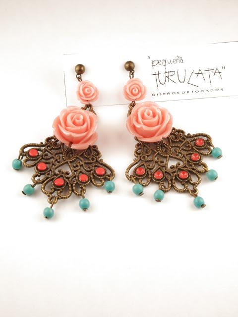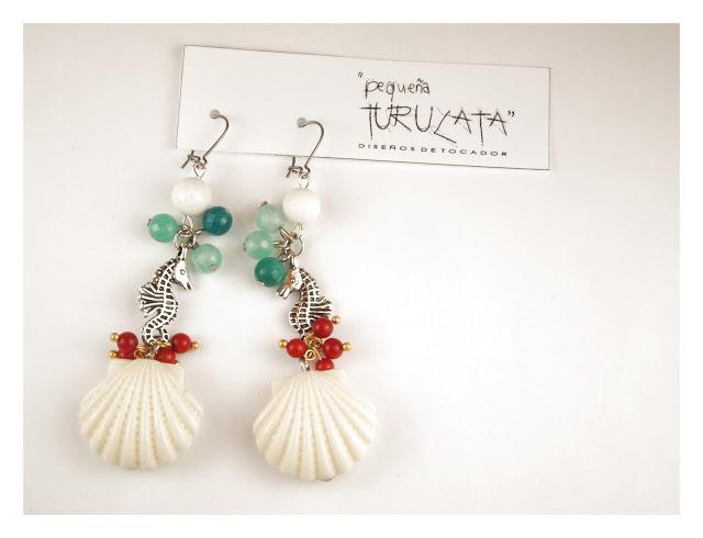 Rosas, conchas y pequeñas estrellas y caballitos de mar están deseando lucir sus mejores galas en estos delicados y románticos pendientes que hemos bautizado con el nombre de "MALVAROSA". Con cuentas de piedras semipreciosas, como la piedra lunar, las turquesas, coral, aguamarinas, amatistas y el cuarzo ahumado. Que dependiendo de la temática, nos pueden transportar a un largo paseo por la playa de Valencia al atardeder o a una soleada mañana en un banco de la rosaleda en Sevilla.