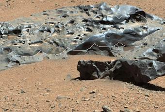 La cámara de alta resolución del Curiosity muestra una roca con formas afiladas y numerosas cavidades en su superficie. Una de las explicaciones puede ser la intensa erosión de los vientos marcianos, aunque otra puede ser que las cavidades estuvieran rellenas de cristales de olivina, material muy común en meteoritos férricos encontrados en la Tierra.