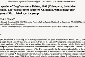Esta nueva especie se ha denominado Troglocharinus pallisei Rizzo & Comas, 2015, dedicada a uno de los colectores y un gran espeleólogo: Joan Pallisé. Es una pena que el trabajo completo no esté abierto al público, pero en la web de Zootaxa podemos ver unas cuantas páginas a través de este enlace: