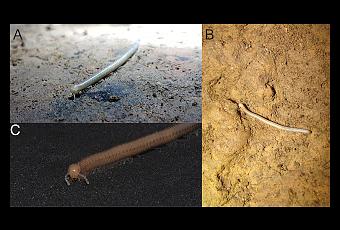 Figure 4. Pseudonannolene canastra sp. nov. live specimens A, B specimens in natural environment C at laboratory, specimen darkened after contact with artificial light. Photos: A DM von Schimonsky and C DJ Tomaz. (Imagen extraída del trabajo anteriormente citado. DOI: https://doi.org/10.3897/subtbiol.35.51183.figure4)Un gran trabajo que se puede leer y descargar en el siguiente enlace a la revista donde se publica.