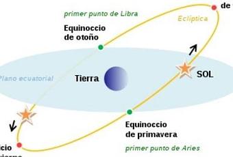 Posición de la Tierra en el equinoccio de Otoño, el Sol está aparentemente en ese momento en el punto de Libra punto corte con el plano ecuatorial de la Tierra con el plano de la eclíptica.