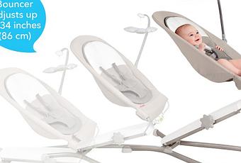Es regulable en altura gracias a un práctico pomo situado en uno de los laterales de la hamaca, pudiendo colocar al bebé a la altura que quieras hasta los 86 cm, así lo mantendrás a la vista, entretenido y bien sujeto.