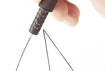 Lix pluma es como una pequeña impresora 3D de mano que extruye un fino hilo de filamento de plástico fundido que se endurece tan pronto como se produce. Al dibujar líneas en el aire, el usuario puede construir bocetos físicos 3D que se asemejan a modelos de alambre.