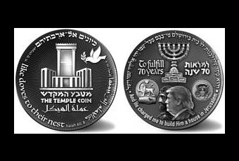 La moneda, un esfuerzo conjunto del naciente Sanedrín, el Centro Educativo Mikdash (Templo) y los Movimientos del Templo Unidos, lo preparó para honrar el 70º aniversario de Israel la próxima semana, el 19 de abril. La moneda contará con imágenes del presidente estadounidense Trump y el rey persa Ciro, al igual que la moneda anterior acuñada en febrero. La imagen del presidente en la moneda pretende ser un claro mensaje de gratitud por reconocer oficialmente a Jerusalén como la capital de Israel.