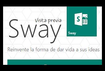 Sway es una aplicación para expresar sus ideas de un modo totalmente novedoso y en cualquier dispositivo. Mire el vídeo de nuestra visión para ver el propósito de Sway. Si se une a Sway Vista previa, podrá ayudarnos a dar forma a ese futuro. Comience creando su primer Sway hoy, con cualquier explorador en equipos PC, Mac o tabletas. Coméntenos qué le gusta, qué no le gusta y qué quiere que agreguemos a Sway a medida que lo usa. ¡Estamos ansiosos por escuchar sus comentarios!