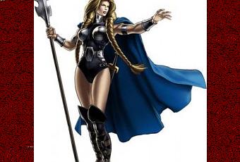 Valkiria, antiguamente conocida como la Asgardiana Brunilda, se enfrentó a Odín el Padre de Todos en lugar de dejar el cuerpo de su amiga caída. Su coraje y su fuerza impresionaron tanto a Odín que la convirtió en la guía de los muertos honrados hacia Valhalla. Armada con Dragonfang, su espada indestructible, y montando su caballo alado Aragorn, es uno de los mayores guerreros de Asgard, y una campeona de la Tierra.