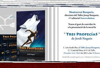 Nueva presentación de Jordi Nogués, esta vez en Valls, población de Tarragona. En esta ocasión el sábado 16 de Abril a partir de las 18 horas.Y os recordamos que se va acercando Sant Jordi recordar que las tiendas hacen descuentos especiales en las compras de libros y cómic, pregunta a tu librero habitual si celebra el día del libro y pide Nowevolution.Tres profecías está teniendo las primeras críticas y todas ellas más que buenas, una novela diferente, con nuevos datos, porque no todo se ha escrito todavía, y Jordi Nogués nos da muchas razones para disfrutar de su lectura. También podéis seguir a su autor y la novela en su facebook oficial. Dinos tus opiniones o ideas.