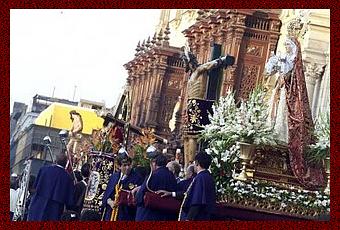 No recuerdo haber visto en Castilla ni en Andalucía una procesión con los misterios dolorosos del Rosario. Me pareció una inspiración de lo alto que espero cunda en el tiempo y en el espacio. Por momentos, la Plaza de Armas de la Ciudad de los Reyes cobró un color especial, lleno de luz celestial y una espiritualidad repleta de esperanza. Sentía que era el pórtico de la Semana Grande, la Semana más santa. Disfruté rezando, con paz, con gozo, contemplando la belleza artística de los pasos y pidiéndole al Señor de la Paz y de la Vida, que esta Pascua 2010 sea un aldabonazo para la renovación, para la conversión, para la misión. Gracias a cuantos tuvieron la magnífica iniciativa y a cuantos la hicieron posible. Repartimos más de mil rosarios y más de dos mil folletos con las oraciones que ayudaron a “meterse en la acción como si presente me hallase”. ¿No es este el sentido de la liturgia? ¿Hacer el memorial de lo vivido por Jesús que en ese momento se actualiza para mí y también anticipar la gloria celestial?. A mí, al menos, me supo a gloria.