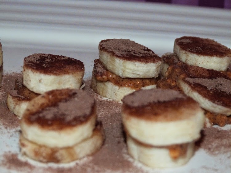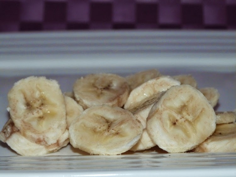 Venga va, que creo que os tengo convencidos aunque veáis muchas calorías, os digo cómo va la receta.Con medio plátano nos valdría (yo hice para mi chico y para mi). Ya os comento que con 3 bocaditos por persona antes de una sesión deportiva es suficiente :)Cortad el plátano en moneditas de medio centímetro o menos de ancho.
