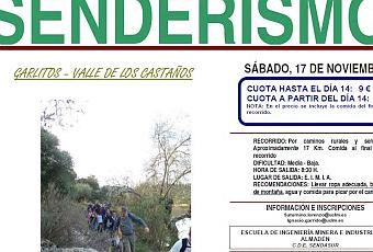 El próximo sábado dia 17 de noviembre se realizará la ruta de senderismo "Garlitos-Valle de los Castaños", organizado por la Escuela de Ingeniería Minera e Industrial de Almadén - C.D.E. Sendasur.