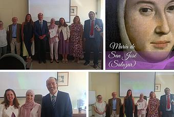 Hoy, 22 de septiembre de 2025, nos alegramos con una noticia que contribuye al redescubrimiento de la figura de María de San José (Salazar), la monja letrera y una de las figuras más eminentes del Carmelo primitivo. Esta mañana, en el Salón de Grados de la Facultad de Filología de la Universidad Complutense de Madrid se ha defendido una tesis doctoral por parte de Fátima Zahrah Zerrad Makhout, dedicada a la edición crítica y al estudio del Libro de las Recreaciones, la obra más significativa de María de San José. La investigación se ha llevado a cabo bajo la dirección de María Esther Borrego Gutiérrez y Álvaro Bustos Tauler, y se enmarca dentro del proyecto de investigación I+D CARMEL-LIT. Mulier fortis. Mulier docta. Hibridismo literario y resistencia en las comunidades carmelitas posteresianas (siglos XVI-XVII), dirigido por la profesora Borrego.