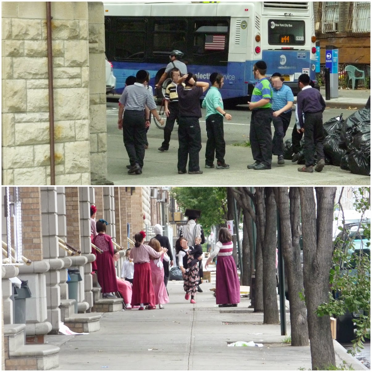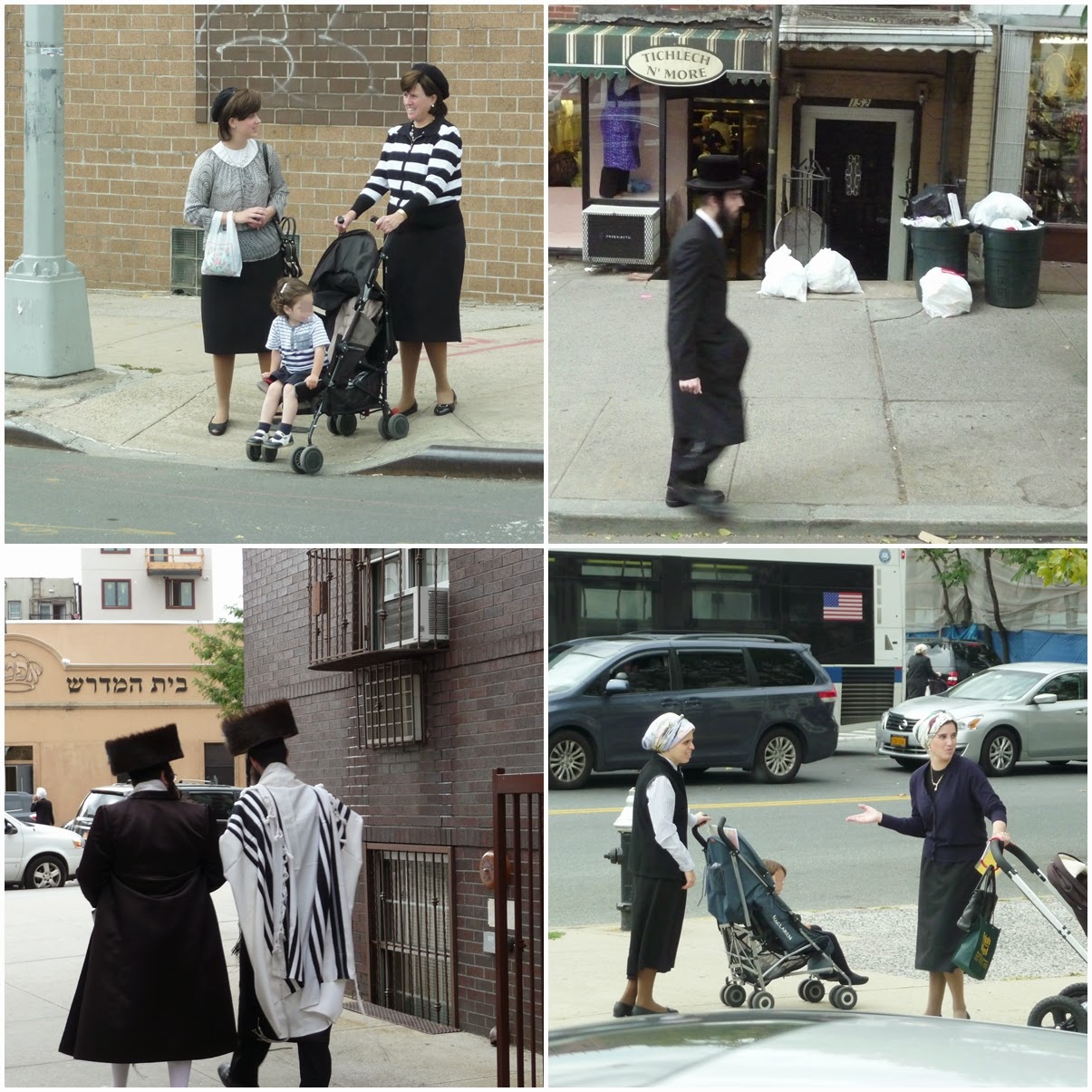 Por otra parte, las mujeres no son nada sexys, desde el punto de vista occidental, claro está. Visten ropas oscuras, faldas largas que cubren más allá de las rodillas, medias hasta en verano. Y las casadas se cubren la cabeza con pañuelos o pelucas que no son nada baratas. Incluso algunas van rapadas ya que el pelo se considera algo sexual que solo debe estar al alcance del marido.En cuanto a los menores, en el colegio tienen una entrada para niños y otra para niñas. Por mucho que nos hubieran contado o hubiéramos leído, era como estar en una película. Era otro mundo.