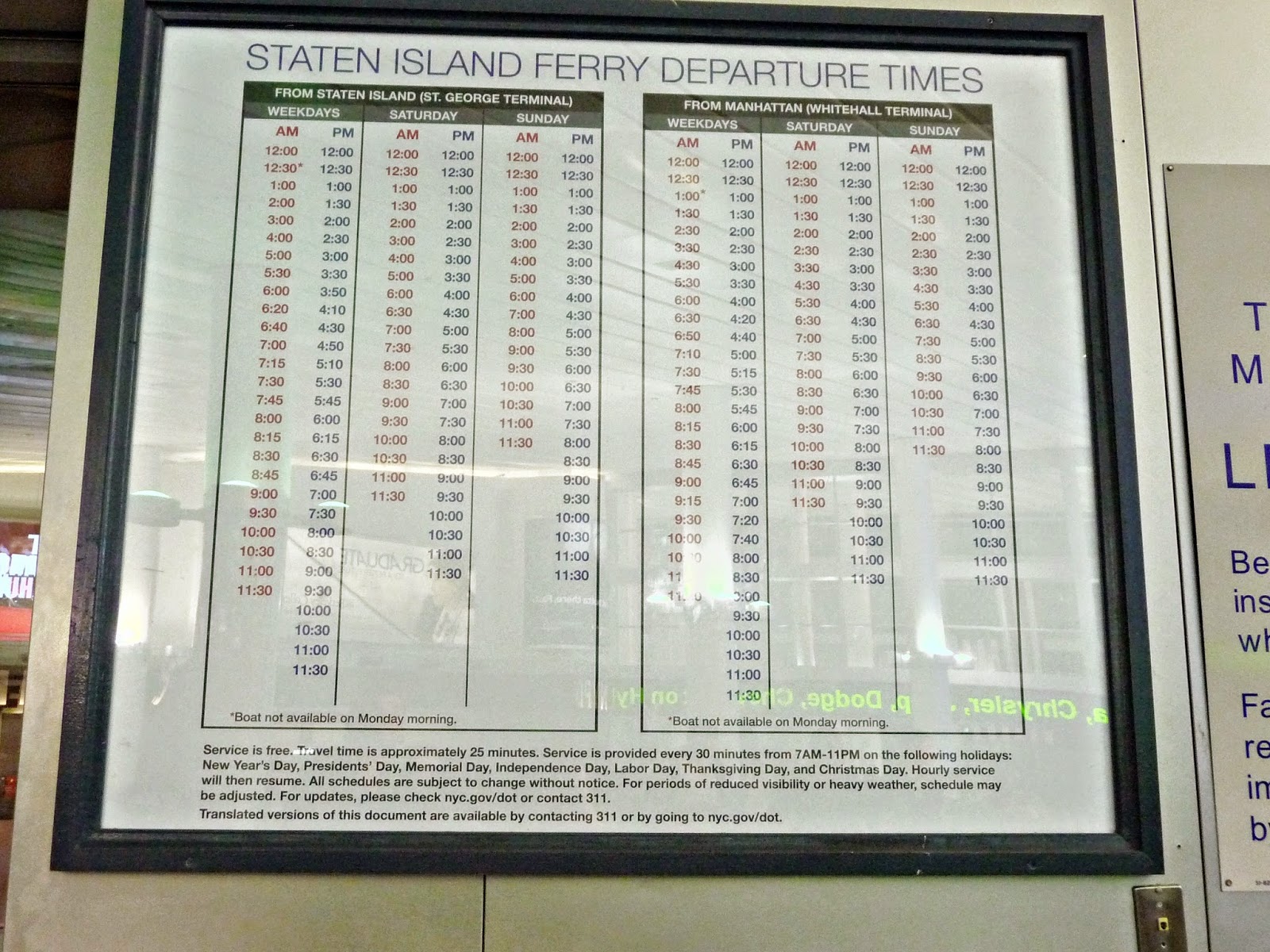 Aunque el viaje gratis en ferry se aproveche para ver la Estatua de la Libertad, no hay que olvidar que se trata de un transporte más en la ciudad que se utiliza para cruzar desde Manhattan a Staten Island y viceversa (el recorrido dura unos 25 minutos), por lo que una vez finalizado el trayecto hay que dar marcha atrás. Para ello, hay que bajarse del ferry y hacer de nuevo la cola. Es imposible quedarse dentro ya que hay revisores que se encargan del desalojo. Si no entras en esa partida de gente, tendrás que esperar al próximo y tiempo perdido es Nueva York es tiempo que no se vuelve a recuperar y que te privas de ver muchas cosas. Por tanto, hay que seguir la táctica de situarse por los laterales ;-)