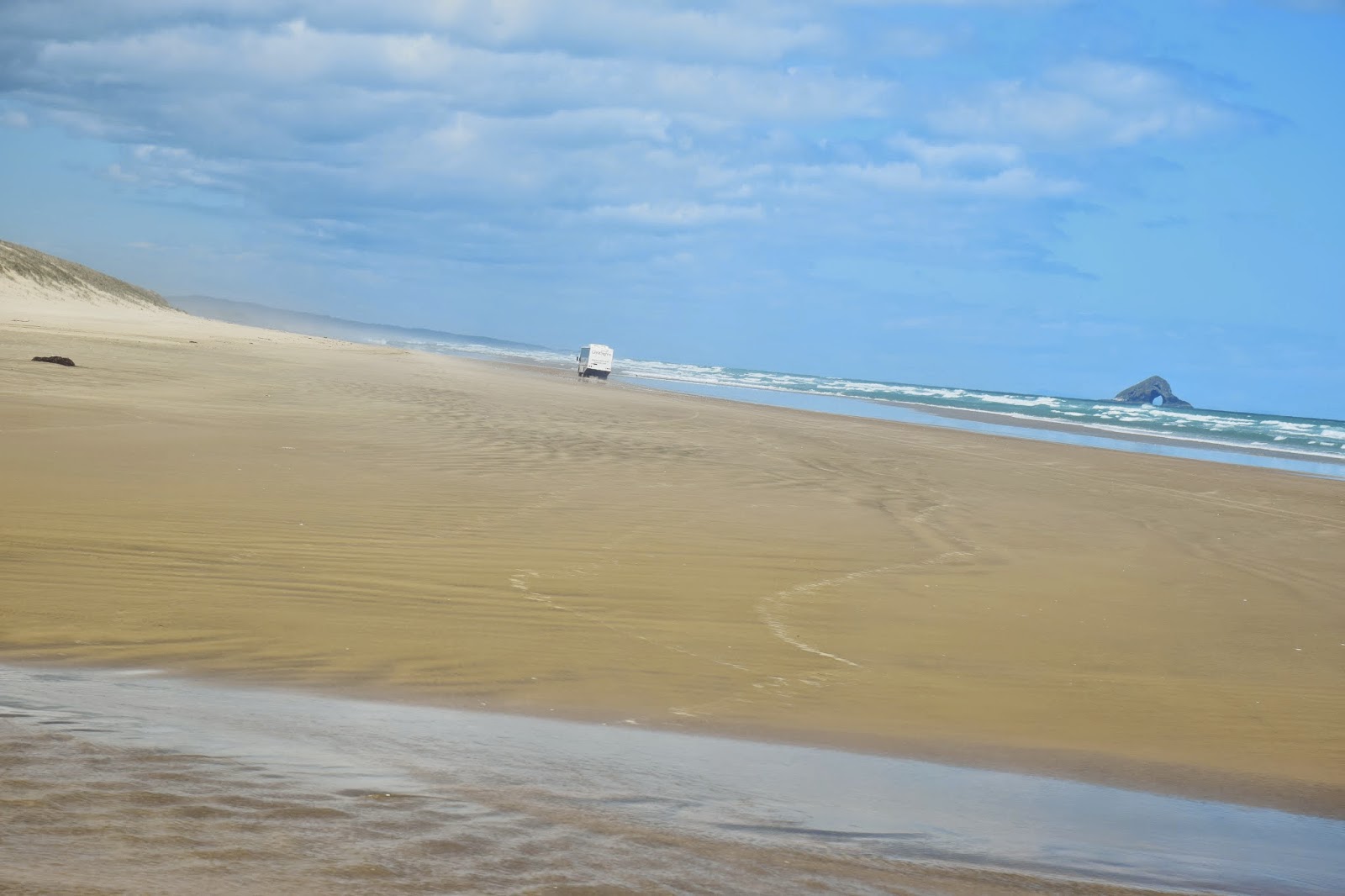 Ninety Mile Beach, la playa de las noventa millas, es la más larga del país y constituye casi un desierto con dunas que alcanzan los 143 metros de altura al lado del mar, su arena es tan densa que por ella circulan coches y autobuses... fue una experiencia increíble!