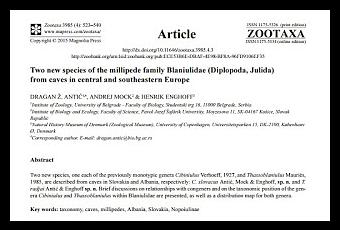En este trabajo se describen dos especies nuevas para la ciencia de cuevas de Eslovaquia y de Albania. Un gran trabajo que no se encuentra de libre acceso, por lo que os pongo el enlace del extracto del mismo que hace la propia web de Zootaxa: