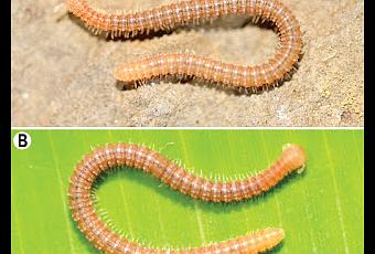 Figure 1. Plusioglyphiulus digitiformis sp. n., A, B, ♀ paratype from Parpant area, live animal. Pictures by R. Srisonchai, not to scale. (Extraído del trabajo mencionado. DOI: https://doi.org/10.3897/zookeys.760.24837.figure1)Además este trabajo está abierto online en la revista científica, y os dejamos el enlace:
