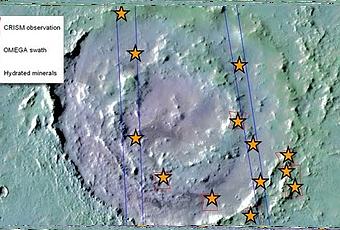 Al comienzo de las observaciones con el espectrómetro OMEGA de la Mars Express había detectado provisionalemente filosilicatos en algunos cráteres de las llanuras del norte, pero los depósitos eran pequeños, por lo que CRISM puede hacer observaciones enfocadas en áreas más pequeñas que OMEGA.
