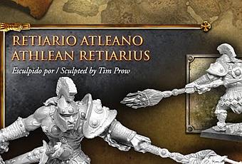 "Armado con la red y el tridente, a imagen y semejanza de su señor Vatos, dios Atleano de los mares, el retiario es un contrincante rápido y escurridizo, que viste poca o ninguna armadura.Evita el combate cerrado cuerpo a cuerpo, manteniendo la distancia con su enemigo hasta el momento indicado, para entonces enmarañar a su víctima con la red, dejándolo indefenso ante las afiladas y cortantes púas de su tridente Atleano".